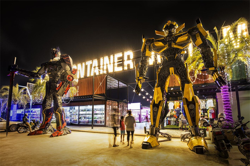 尽管集装箱市场需要具有多元化特色的设计感,但许多的城市都拥有属于自己的标志性集装箱市场,就比如这个名叫【Palm Container Night Market】的特色夜市商业街。目前,该商业街共有120个租户商店,该公司希望将来将其增加到约300个。它分为高棉美食,泰国美食,海鲜,烧烤和咖啡厅等餐厅区域,以及服装,配饰,箱包,纪念品和便利店等商店区域。